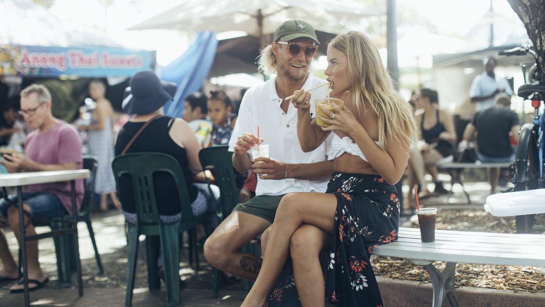 Once you’re back on land, take a lover’s stroll through Darwin’s famous street markets. Get lost in the music, stalls and the aromas of ethnic foods on offer at the famous and multicultural Mindil Beach Sunset Markets – operating every Thursday and Sunday night in the dry season. Nothing says romance quite like sitting side by side on the beach, laksa in hand, bare feet in the sand while you watch an epic Darwin sunset.